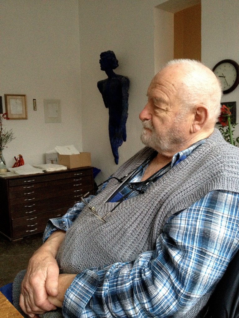 It is always a special treat to visit the illustrious Czech sculptor Olbram Zoubek at his studio. We walk through the forecourt amongst a crowd of statues. It seems they are waiting to greet us.